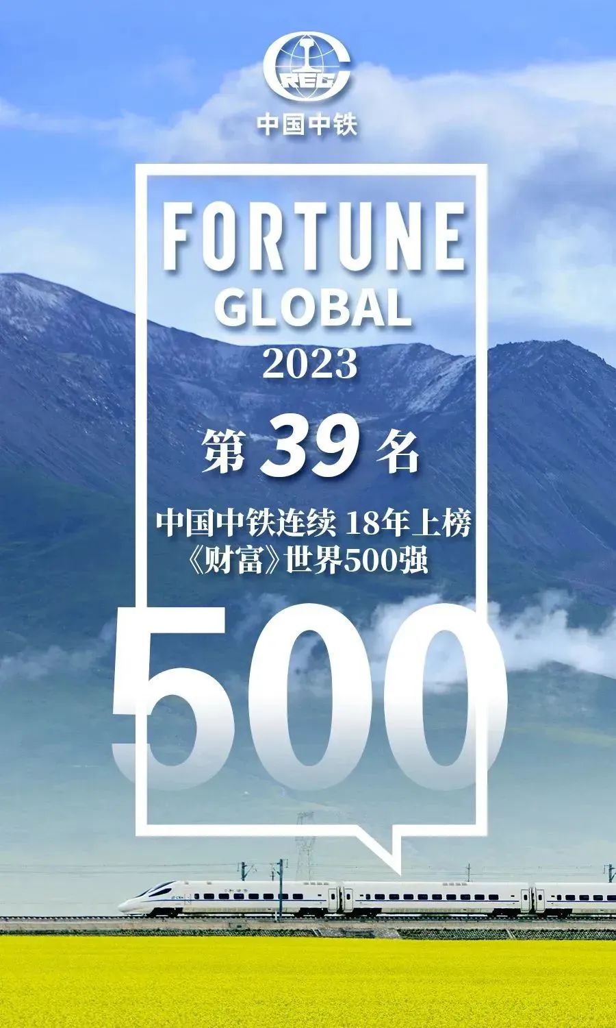 8月2日,财富中文网发布了2023年《财富》世界500强排行榜。控股股东--中国中铁位列榜单第39名,连续18年上榜。