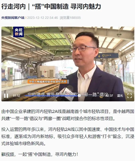 新华社:走进越南河内吉灵-河东线城市轻轨