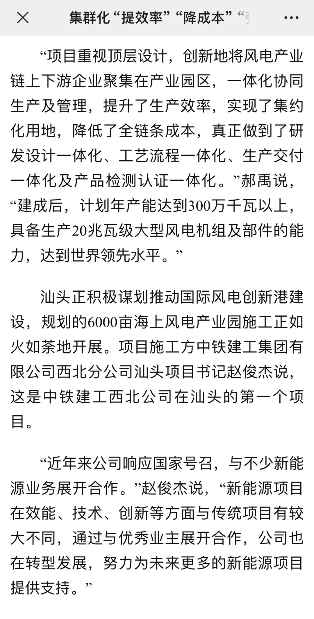 内容简介:汕头正积极谋划推动国际风电创新港建设,中铁建工承建的规划6000亩海上风电产业园施工正如火如荼地开展。