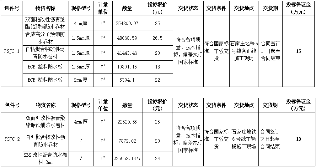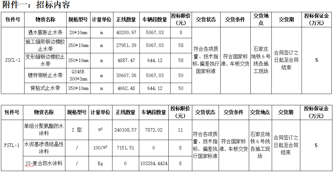 近日,中国中铁股份有限公司石家庄市城市轨道交通6号线一期工程项目防水材料招标采购招标公告发布。
