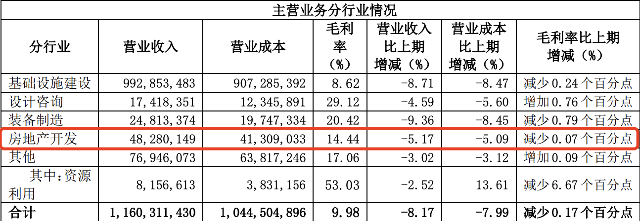 中国中铁(601390.SH)年度报告显示,2024年,房地产开发业务实现营业收入482.8亿元,同比下降5.17%;