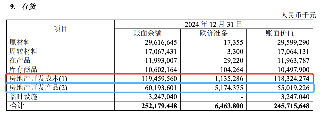 房地产开发成本项目账面余额1194.6亿元,账面价值约1183.24亿元;