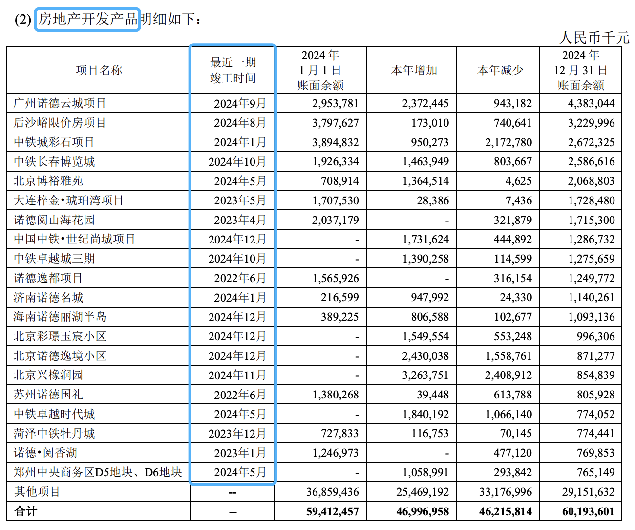 房地产开发产品项目账面余额601.94亿元,账面价值约550.19亿元。