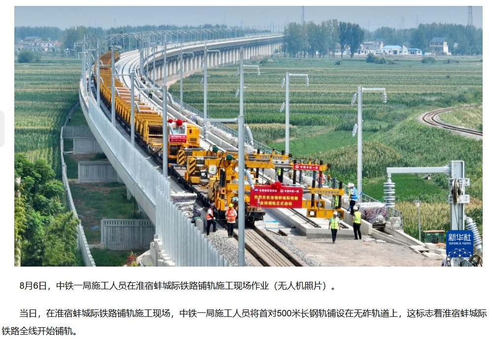 新闻联播、新闻直播间:淮宿蚌城际铁路开始全线铺轨