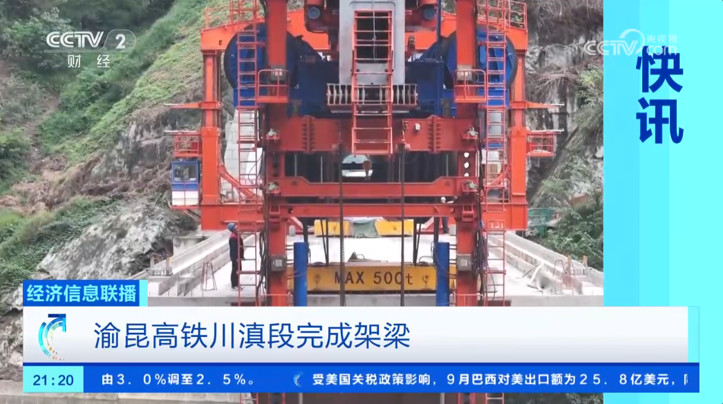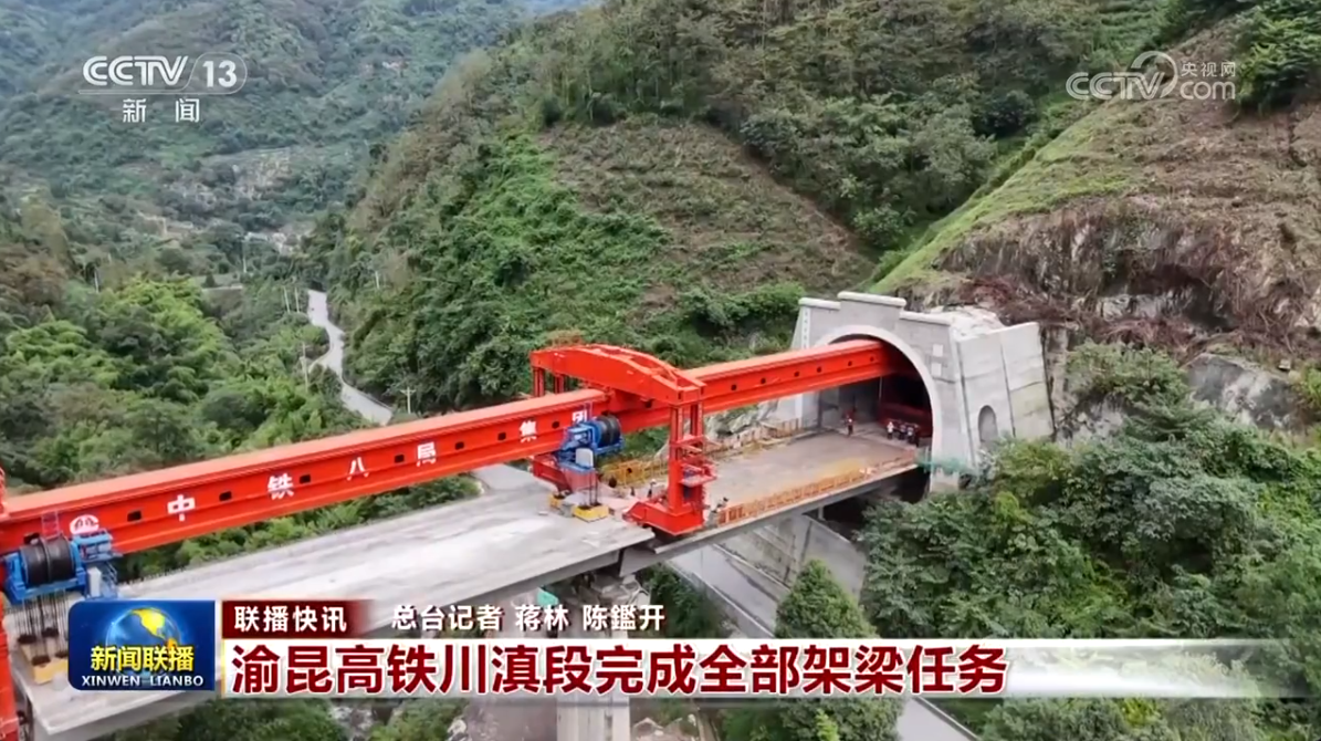 新闻联播、新闻直播间、朝闻天下、午夜新闻、经济信息联播、中国新闻、今日环球:渝昆高铁川滇段完成架梁