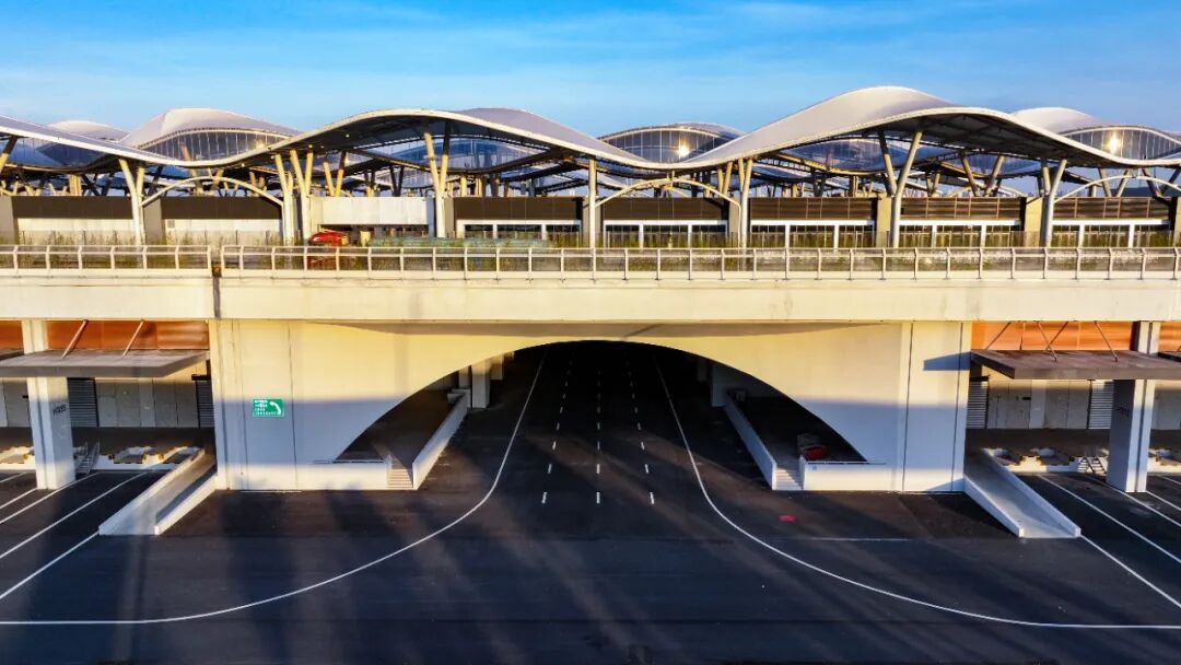 主体结构建设挑战更为严峻。为满足重型货车高效通行,查验大厅需实现48米的单向超大跨度,层高超13米,其模板支撑体系属最高等级的超危大工程,且项目融合了传统框架、装配式结构、大跨度膜结构、阻尼器等多元工艺,技术集成复杂程度在国内同类工程中尚属前列。