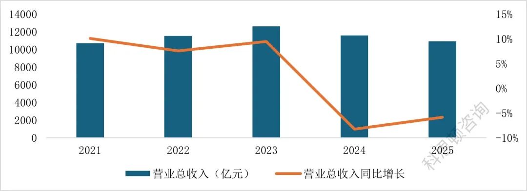 *营业总收入10935亿元,同比下降5.8%;