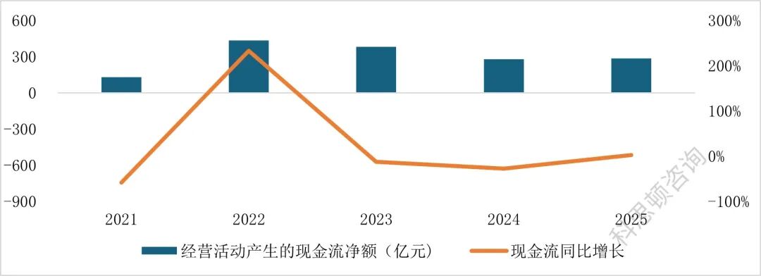 *经营性现金流净额287.7亿元,同比增长2.6%;