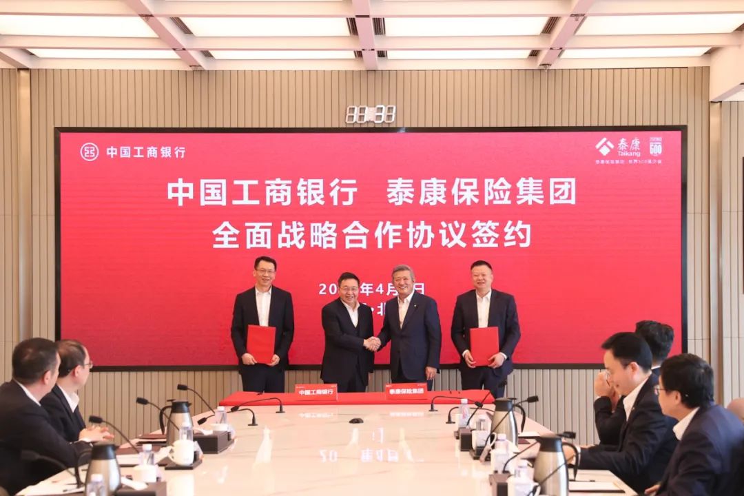 4月6日上午,泰康保险集团与中国工商银行签署全面战略合作协议。中国工商银行董事长陈四清、副行长段红涛及相关部门负责人一行到访泰康集团大厦,泰康保险集团董事长兼首席执行官陈东升、执行副总裁兼泰康人寿总裁程康平、副总裁兼泰康在线总经理李朝晖、管委会成员、泰康人寿副总裁兼银行保险事业部总经理薛继豪,泰康人寿、泰康养老、泰康资产及泰康之家相关部门领导参加会见及签约仪式。