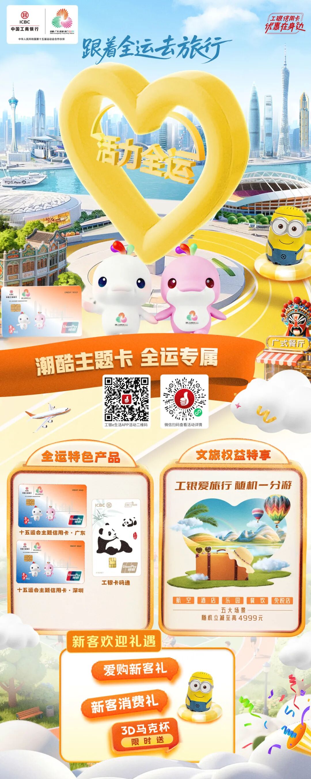 工商银行推出“全运会纪念版粤港澳湾区信用卡”,卡面融合全运赛事吉祥物元素,兼具收藏价值与潮流属性;针对港澳居民及外籍来华观赛人士,优化“卡码通”极速申领服务,支持口岸、酒店、赛场等场景便捷刷卡,畅通跨境支付渠道,切实提升跨境消费体验。