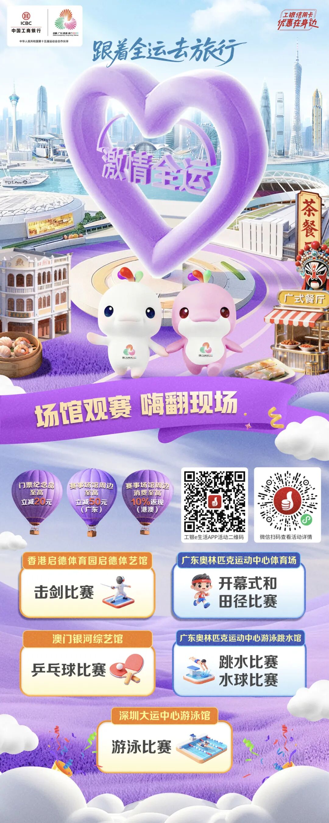 此外,工商银行在大湾区约1500家网点开设“全运服务绿色通道”,并通过“工行全运驿站”为志愿者、市民及观众提供暖心服务,传递“活力工行”服务温度。
