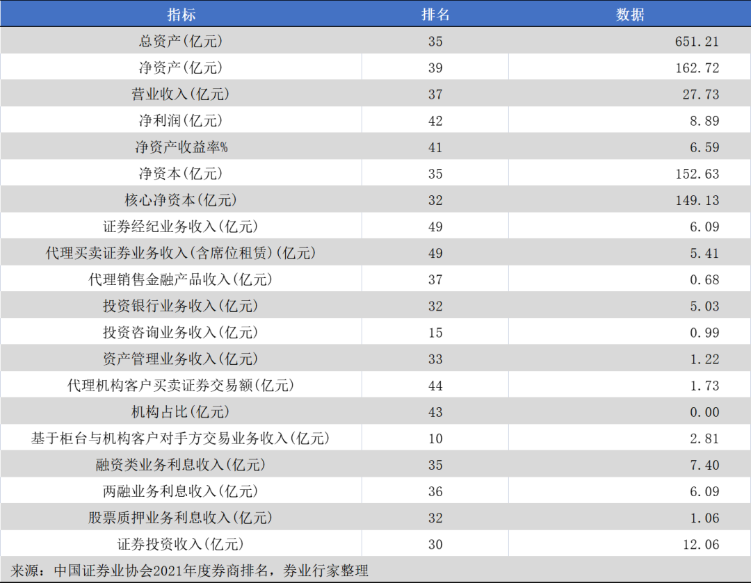 2021年度,国联证券融资类业务排名第34位,其中股质业务收入排名第32位;而国联证券营业收入和净利润分列第37、42位。