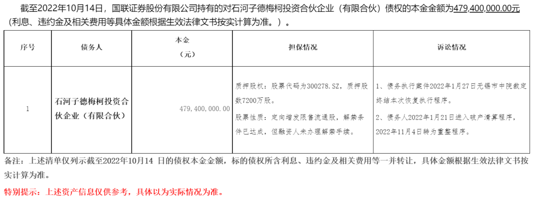 或许,国联证券因为没有处置不良的资质,将这笔债权折价转让。