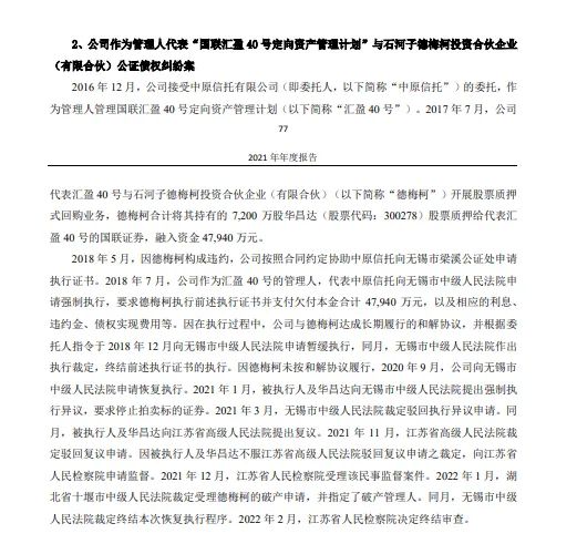 行家查看了国联证券2021年报,得知这一纠纷的始末。