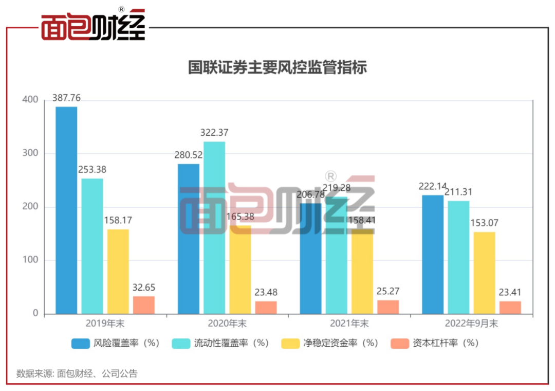 需关注的是,国联证券的流动性覆盖率自2020年末开始下降,由2020年末的322.37%下降到2022年9月末的211.31%,整体下降了111.06个百分点。