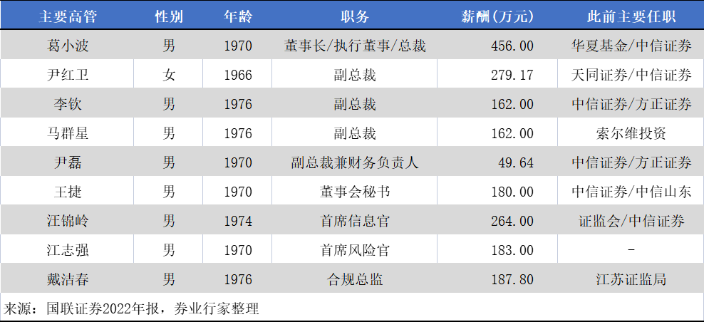 稍早之前发布的2022年报披露,汪锦岭薪酬264.00万元,在国联证券高管列表中仅次于董事长、执行董事、总裁葛小波(456.00万元)和副总裁尹红卫女士(279.17万元)。