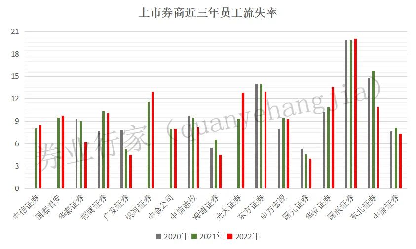 行家查看了已披露社会责任报告的上市券商,国联证券员工流失率目前位于行业第一。