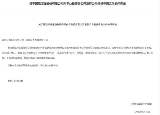 6月28日,证监会发布问询函,而本次问询函的接收方则为国联证券。