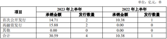 公司通过全资子公司华英证券从事投资银行业务。具体主要包括股权融资业务、债券融资业务和财务顾问业务。2023年上半年,华英证券完成IPO项目2单,承销金额14.71亿元。此外,另有已过会项目3单,申报在审项目5单,辅导项目11单。