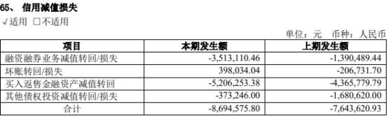 今年上半年,国联证券信用减值损失为-869.46万元,上年同期为-764.36万元。
