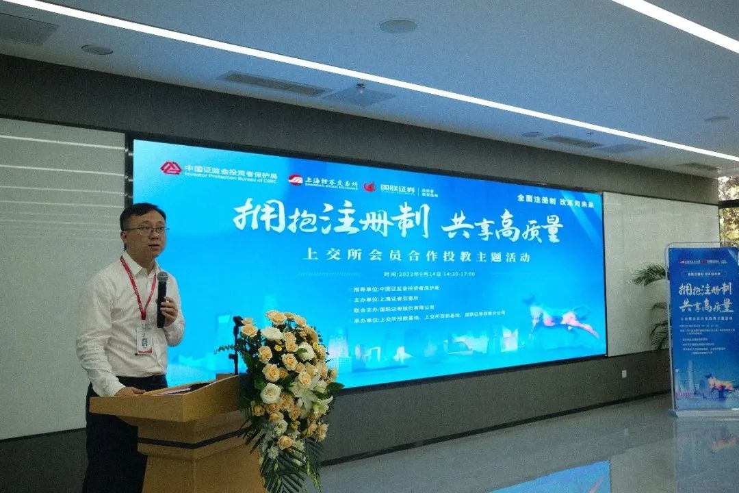 2023年9月14日下午,主题为“拥抱注册制共享高质量”的投资者教育主题活动在上交所西部基地成功举行。此次活动由上海证券交易所主办,国联证券投教基地联合主办,上交所投教基地、上交所西部基地以及国联证券西南分公司共同承办。