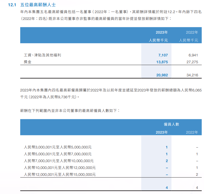 除此之外,国联证券四名高薪员工的薪酬合计2,098.2万元,包括工资、津贴及其他福利710.7万元,奖金1,387.5万元。前者同比有所增长,后者几乎减半。