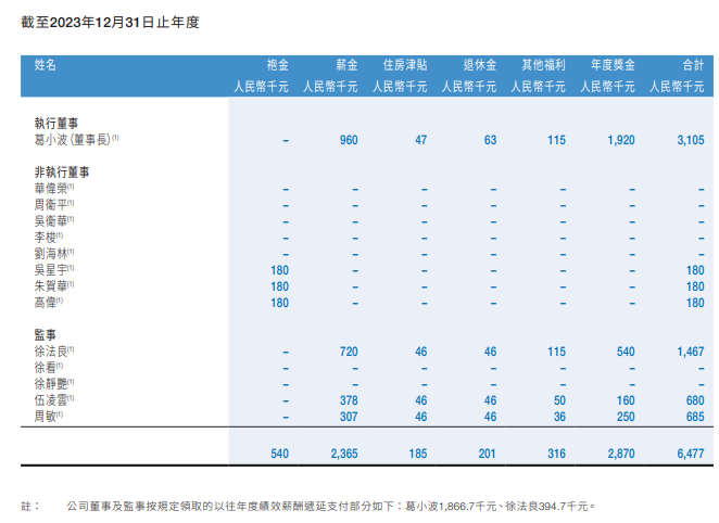 依照港股要求,国联证券披露了五名最高薪雇员的薪酬情况,其中一名为公司董事。后文显示,这位正是国联证券董事长葛小波先生。2023年,他的薪酬为310.5万元,包括96万元薪金,4.7万元住房津贴,6.3万元退休金,11.5万元其他福利和192万元年度奖金。在此之前的2021年和2022年,其薪酬分别为376万元和456万元。