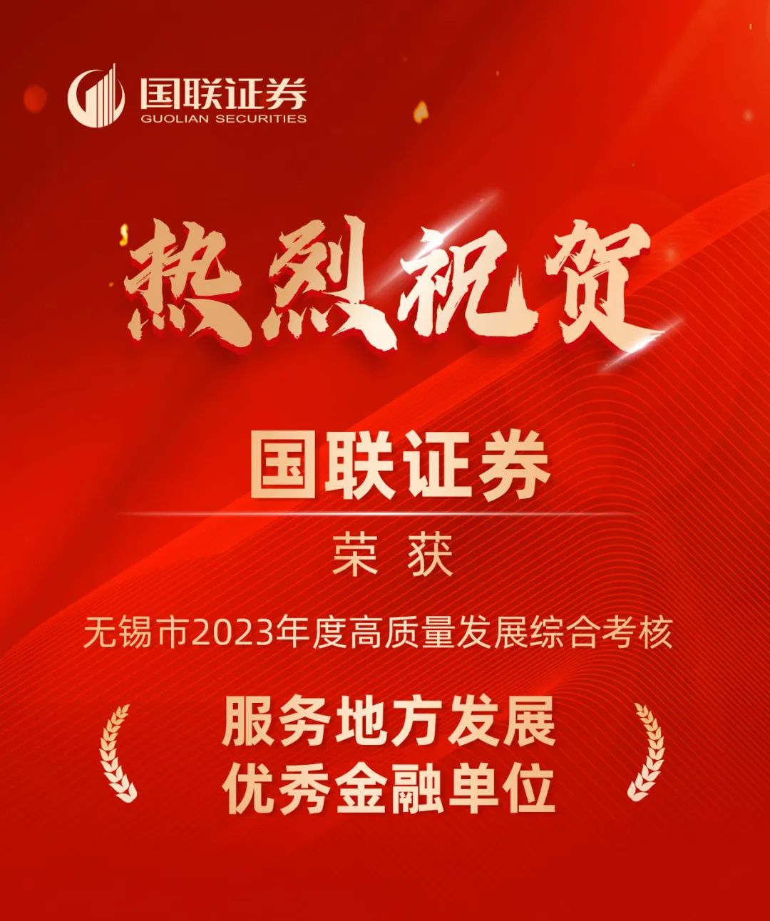 2023年度无锡市高质量发展综合考核结果近日揭晓,国联证券及投行子公司华英证券均荣获“服务地方发展优秀金融单位”。