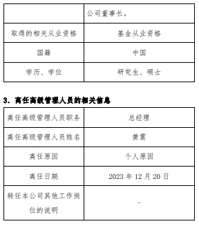 去年12月22日,国联基金曾发布公告称,总经理黄震因个人原因离任,王瑶代任公司总经理。