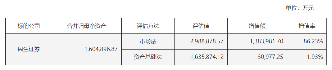 上述交易方案调整不构成对本次重组方案的重大调整。调整后,国联证券拟294.9亿元收购民生证券99.26%股份。本次交易对价对应民生证券PB为1.86倍,100%股权评估结果298.9亿元,增值率达86.2%。对比12月4日披露的草案,国联证券还完善了民生证券诉讼及仲裁风险的相关表述。