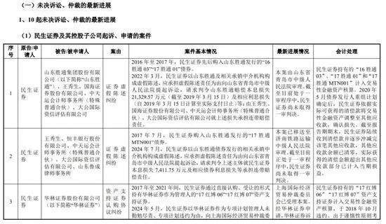 具体来看,民生证券诉山东胜通集团股份有限公司(简称:山东胜通)、王秀生、国海证券、中天运所、大公国际案,索赔金额2.13亿元。民生证券诉王秀生、恒丰银行、中天运所、大公国际、鲁成律所案,索赔金额为7411.75万元。两起案件尚未一审判决。