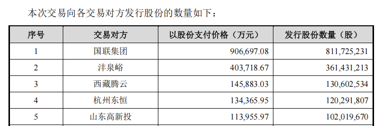 募集配套资金方面,上市公司拟向不超35名特定投资者发行股份募资,总额不超20亿元,发行A股股份数量不超2.5亿股。