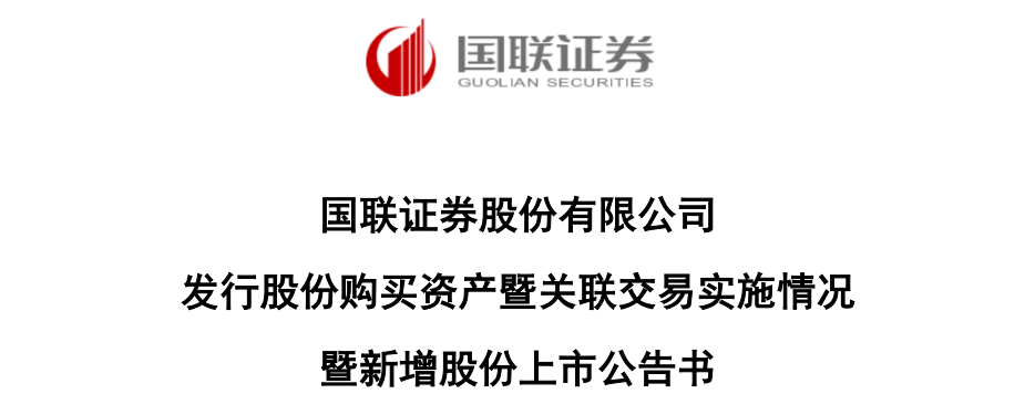 1月6日晚,国联证券(601456)发布增发上市公告,公司已通过发行A股股份的方式,向控股股东国联集团以及其他44名交易对方收购了民生证券合计99.26%的股份,并同步完成了配套资金的募集。