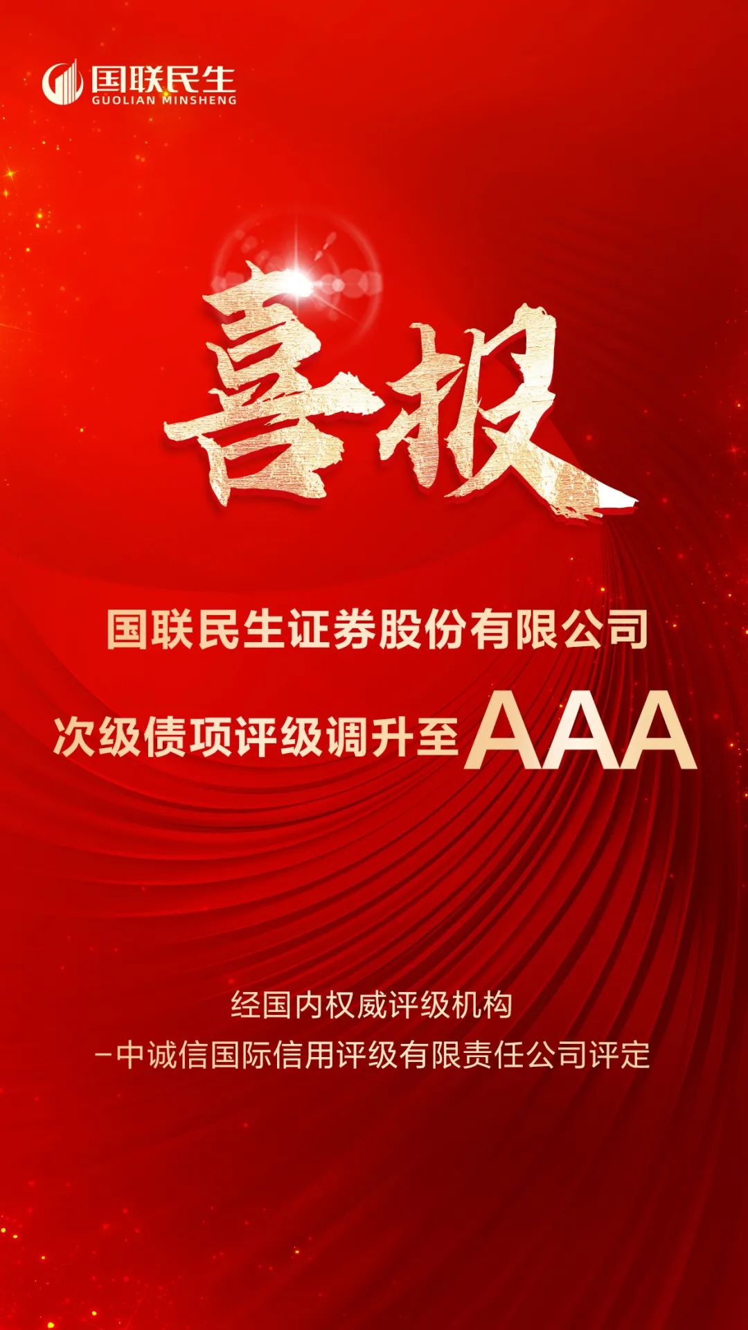 近日公司收到了权威评级机构中诚信国际信用评级有限责任公司(以下简称“中诚信国际”)关于公司次债债项信用等级的公告,公司发行的“24国联C1”和“24国联C2”次级债券的债项信用等级从AA+调升至AAA。