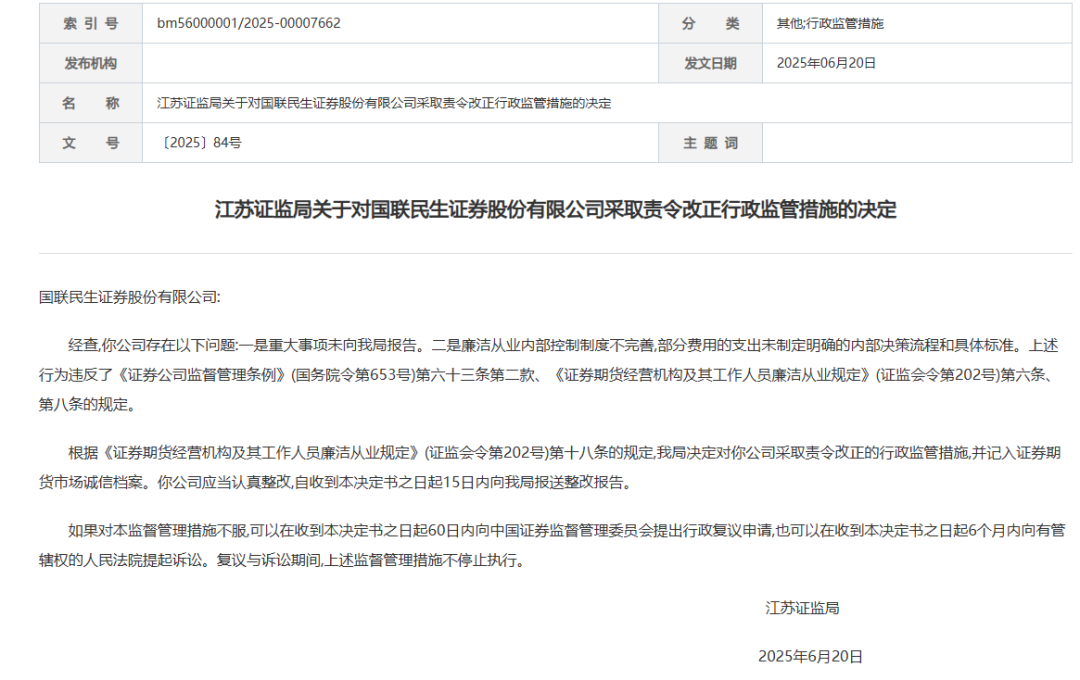 沉寂多时后,江苏证监局又见券商罚单,点名国联民生证券存在两大违规——