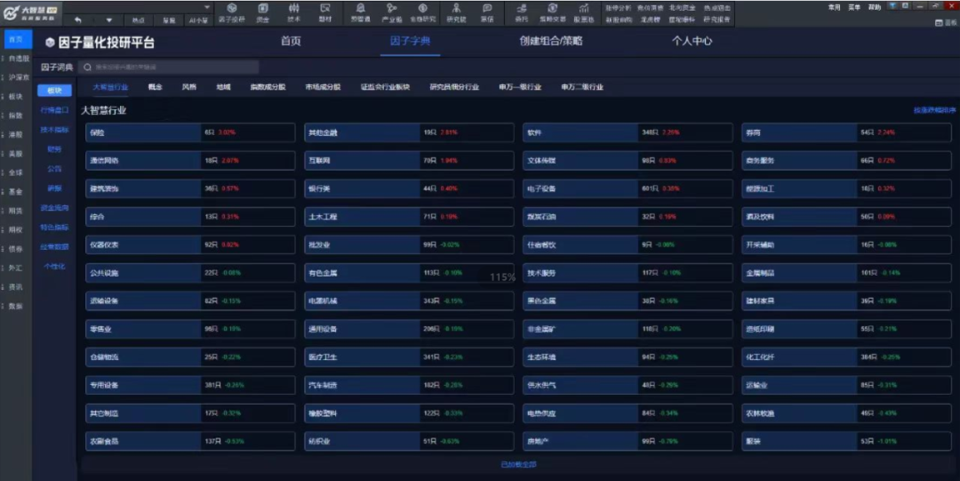 “因子”是用于衡量股票的一种细分维度,可以从多个角度来评估和分析股票的特征。大智慧VIP目前提供了数千个因子(未来将会拓展到几万个因子),这意味着股票评估可以基于数千个不同的维度来进行。这些维度不仅包括常见的技术面、资金面、题材面和舆情面等传统因子,还包括许多独特的特色维度。