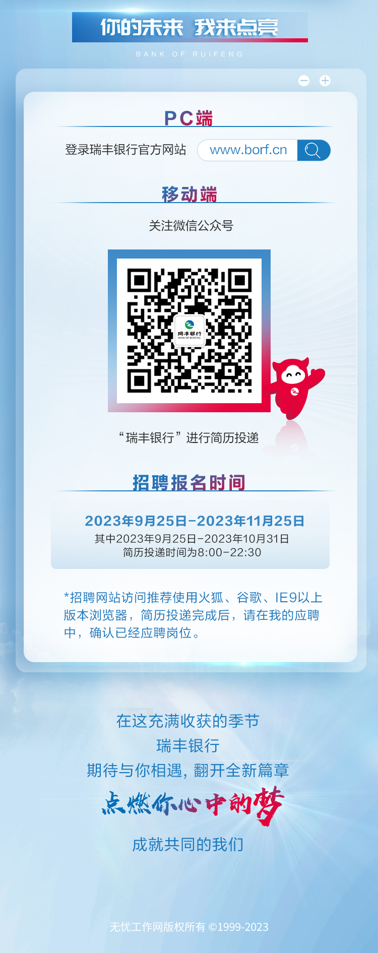 你的未来 我来点亮 | 瑞丰银行2024秋季校园招聘