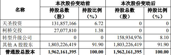 瑞丰银行第一大股东绍兴市柯桥区天圣投资管理有限公司(以下简称“天圣投资”)及其控股股东绍兴市柯桥区交通投资建设集团有限公司(以下简称“柯桥交投”)与浙江柯桥转型升级产业基金有限公司于2023年9月26日签署了《浙江绍兴瑞丰农村商业银行股份有限公司股份转让协议》,天圣投资、柯桥交投以协议转让方式分别向转型升级公司转让其持有的瑞丰银行股份131,857,166股和27,077,810股,合计转让158,934,976股,占瑞丰银行已发行普通股总股本的8.10%。本次交易尚待依法履行监管审批程序。
