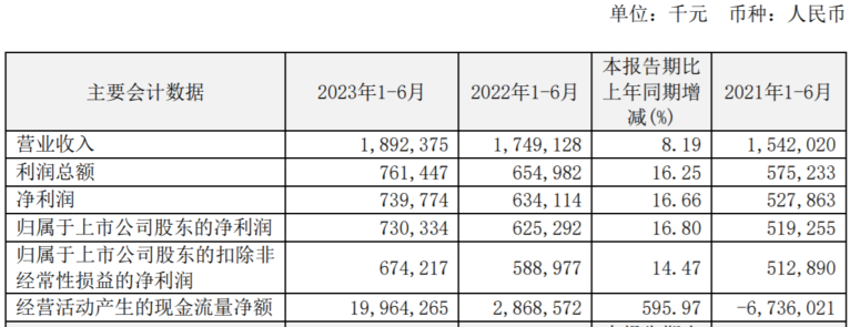 在A股上市银行中,瑞丰银行是首家披露2023年上半年业绩的银行,实现营业收入18.92亿元,同比增长8.19%;实现归属于上市公司股东的净利润7.30亿元,同比增长16.80%。期末总资产达1899.09亿元,较年初增幅18.97%。