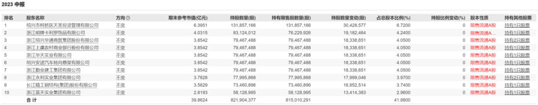 瑞丰银行(601528.SH)前身为绍兴县信用联社,先后改制为浙江绍兴县农村合作银行、农商银行,2021年6月在上交所主板上市,第一大股东为绍兴市柯桥区天圣投资管理有限公司,持股比例6.72%,其余股东单一持股比例均低于5%且以浙江省内民企为主,股权结构分散,无实际控制人。