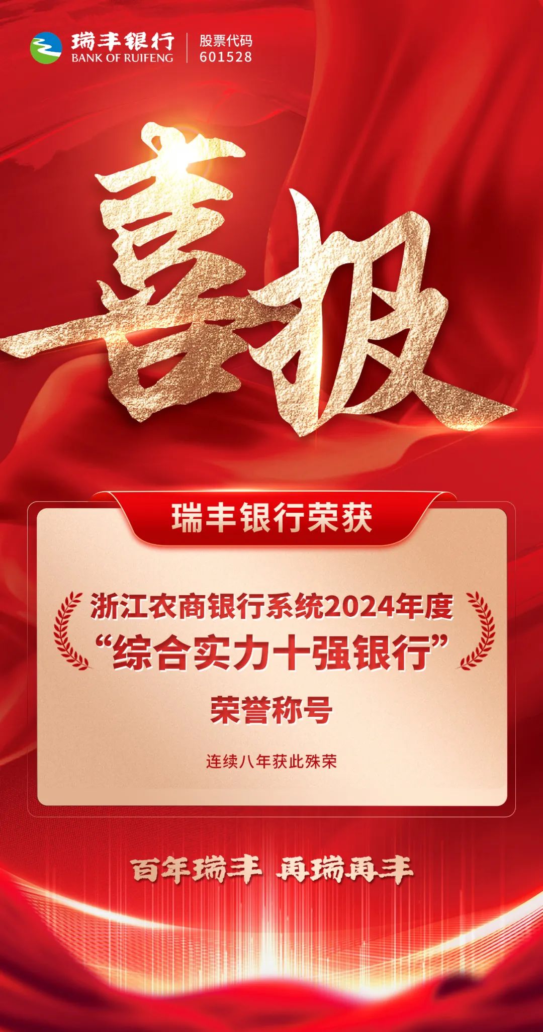 瑞丰银行荣获浙江农商银行系统“综合实力十强银行”荣誉称号