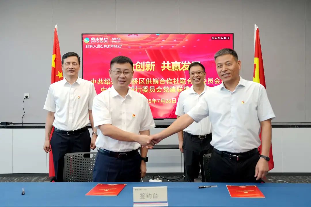 7月28日下午,瑞丰银行与柯桥区供销合作社联合社举行党建联建签约仪式。瑞丰银行党委书记、董事长吴智晖,柯桥区供销合作社联合社党委书记、理事会主任施林涛致辞。柯桥区供销合作社联合社党委委员、监事会主任全小锋,党委委员、理事会副主任张绍峰,华通商贸集团总经理黄展林,瑞丰银行党委副书记、行长陈钢梁,党委委员、副行长宁怡然等参加活动。