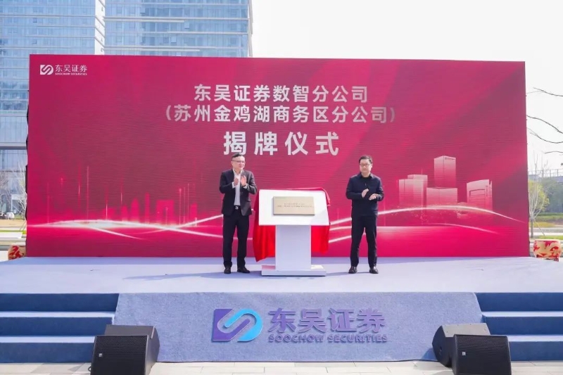 当天,东吴证券数智分公司(苏州工业园区金鸡湖商务区分公司)正式挂牌。