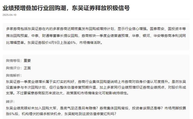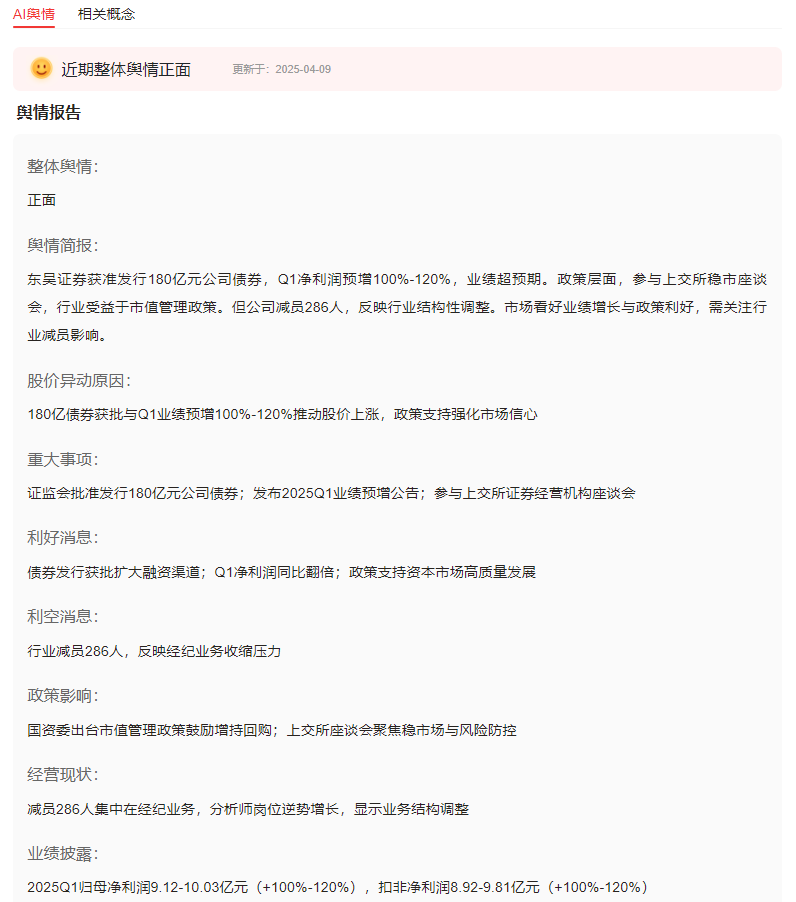 2025年4月8日,东吴证券参与上交所组织的10家头部券商座谈会,会议释放出“凝聚合力稳定市场”的强烈信号。