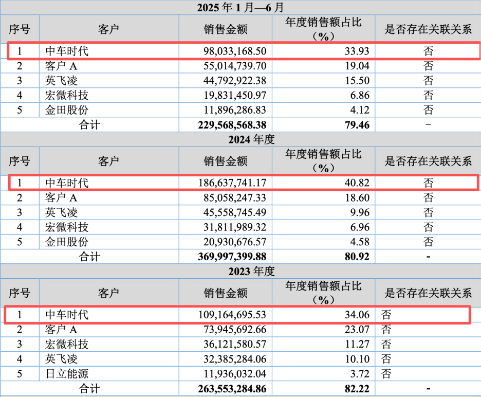 赛英电子 依赖中车时代且实控人陈国贤反向注资其关联方 招股说明书披露,中车时代(CRRC Times)是发行人报告期内毫无争议的第一大客户。报告期内,公司向前五大客户的销售收入占营业收入的比例分别高达 90.50%、82.22%、80.92%和 79.46%。客户集中度本身即构成重大经营风险,另实控人陈国贤投资大客户关联方“有限合伙”。