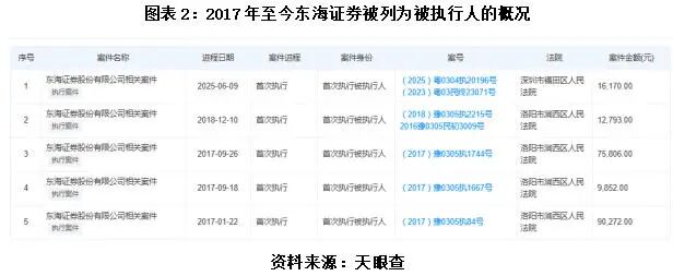 除上述行政处罚外,东吴证券还将全盘承接东海证券潜藏的合规风险敞口,其中最致命的便是金洲慈航项目可能引发的投资者集体诉讼赔偿责任,相关赔偿金额尚无法预估。此外,东海证券还曾卷入华仪电气(已退市)的虚假陈述案件,并因此受到证监会处罚;在过往数年里,其还多次因司法纠纷被列为被执行人,合规治理的薄弱性可见一斑。