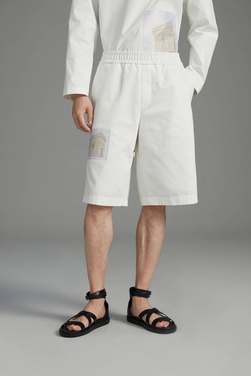 黑格尔称服装为“浮动的建筑”,九牧王这款短裤便是将法国地标性建筑凯旋门与裤子完美结合。此款短款采用阔腿版型,??的?料通过简单的弹?腰头,结合可调节翻折的裤边设计,让穿着者清爽且舒适,裤边的贴?清晰体现法国凯旋?图案,更好的增加了整条短裤的价值感和时尚度。