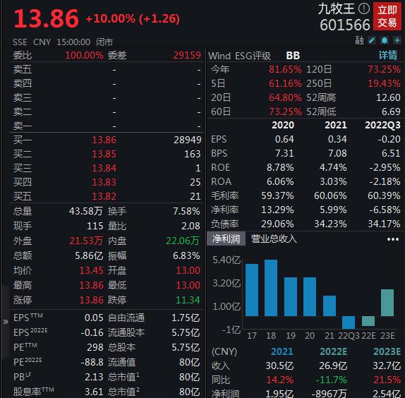 3月2日晚间,五连板的九牧王发布公告称,股票短期涨幅以及市盈率显著高于同行业指数水平;预计2022年出现亏损,请广大投资者理性投资,注意投资风险。