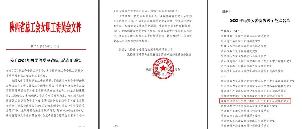 近日,从陕西省总工会传来喜讯,北元集团母婴关爱室荣评三星级母婴关爱室省级示范点。