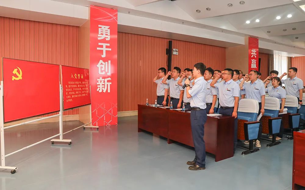 大会在雄壮的国歌声中拉开帷幕。工作人员宣读了2024年纳新党员名单,21名纳新党员面向鲜红的党旗,进行了庄严宣誓。纳新党员代表作了表态发言。